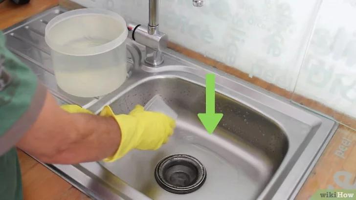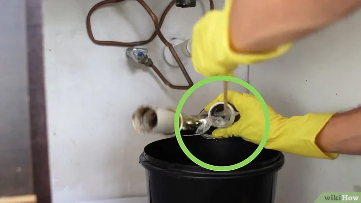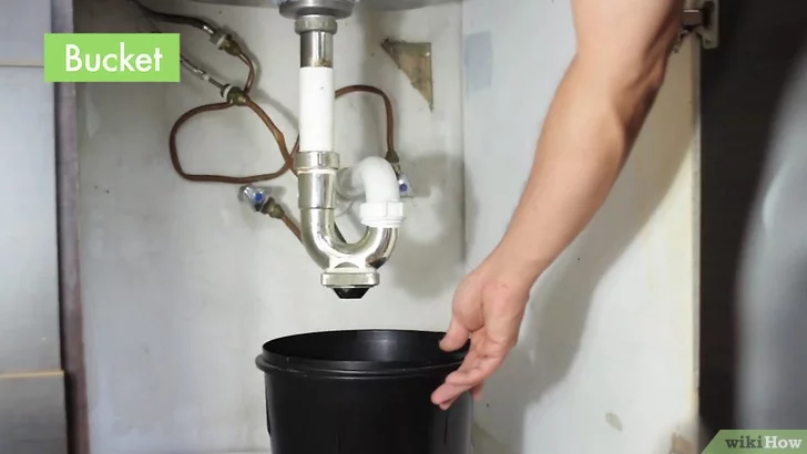 Lastik eldiven giy. Lavaboda kalan suyu boşaltmak için bir tas ya da bardak kullan. Suyu bir kovanın içine dök.