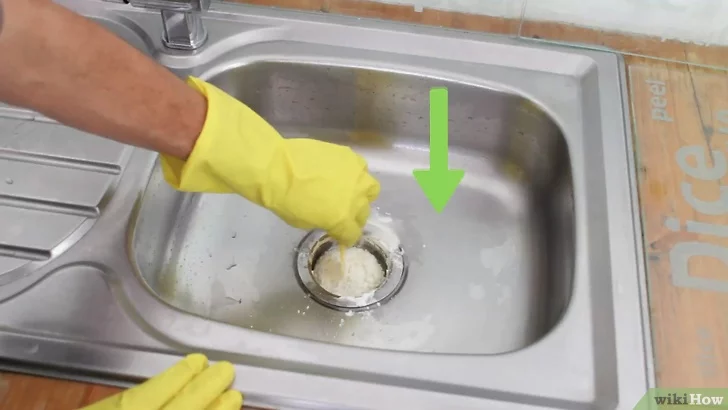 Lavabo giderinin içine 1 bardak karbonat boşalt. Eğer gerekirse, bir spatula yardımıyla karbonatın gider ağzından geçmesi için güç uygula