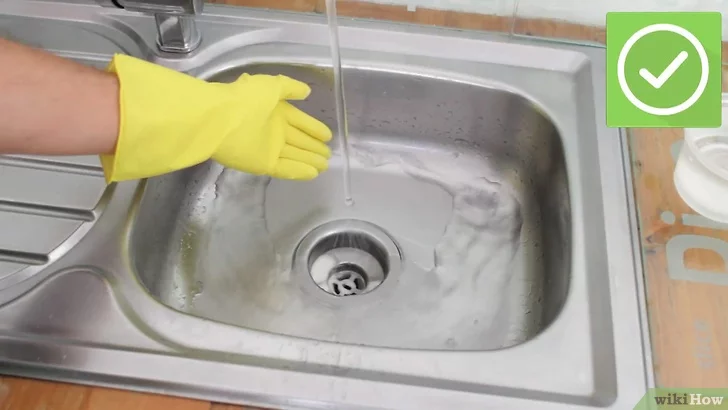 Solüsyonun tıkanıklığı açması için 5 dakika bekle. Sonra tıkanıklığın açılıp açılmadığını görmek için lavabonun içine ılık su akıt giderin içine 4 bardak kaynar su dök. Lavabodaki tıkanıklık devam ederse, tekrar uygula